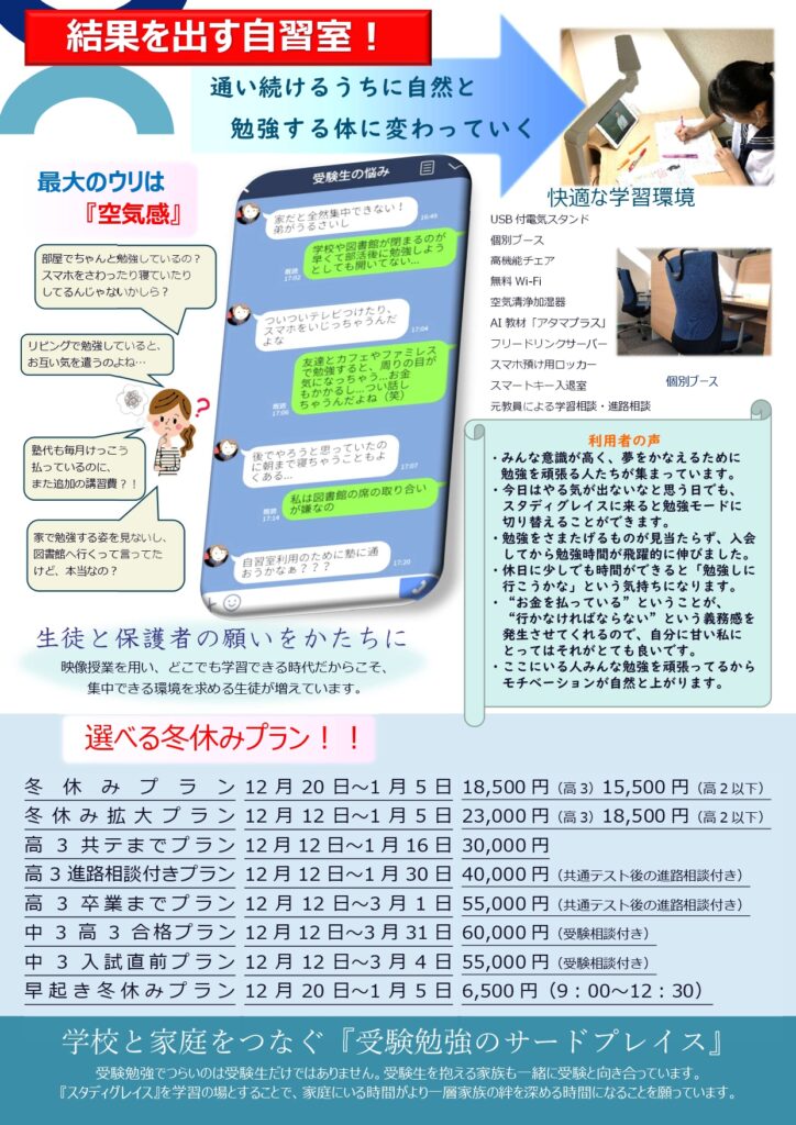 冬休み自習室通い放題プラン募集(浜松館のみ)
